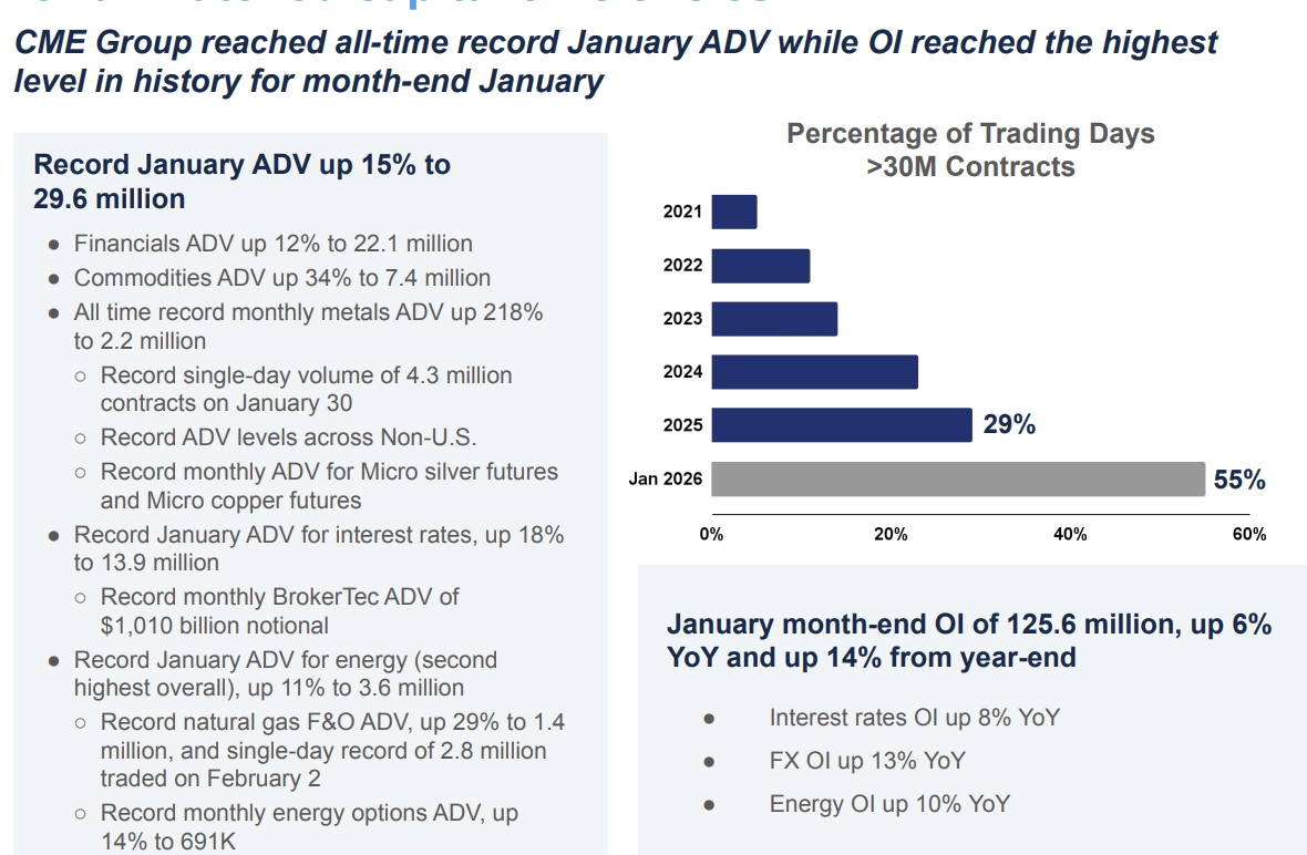 In January this year, CME also reached a record average daily volume for the month and record open interest for the end of the month.