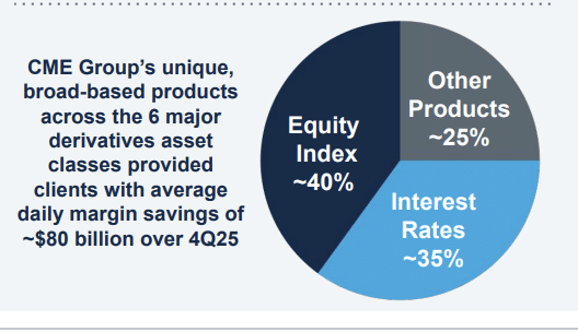 In addition to 24/7 crypto trading, Duffy said CME is focused on further increasing average daily margin efficiencies provided to users and expanding access through initiatives such as U.S. Treasury clearing and prediction markets.