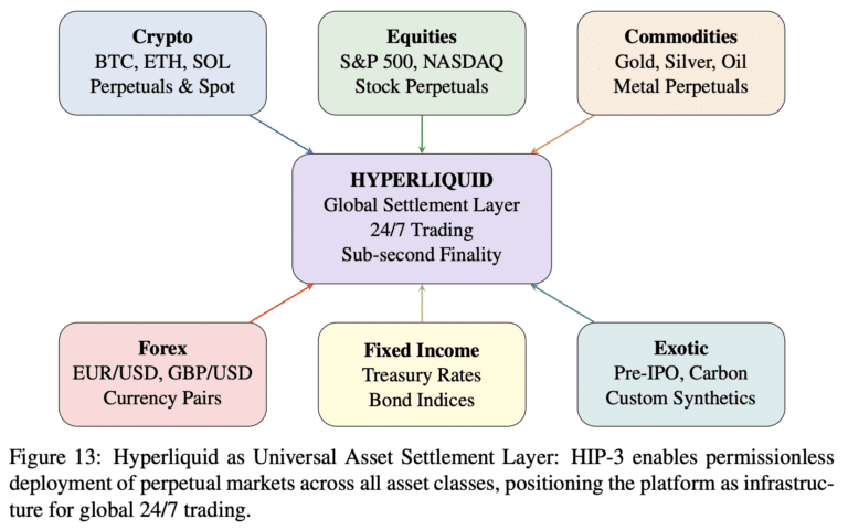 SmartestXYZ, a crypto research entity, said in a report: “This is not mere marketing rhetoric. The strategic trajectory of the protocol—from perpetual futures dominance to spot token markets (HIP-1), automated liquidity provision (HIP-2), permissionless derivatives deployment (HIP-3), and institutional stablecoin integration—reveals a coherent roadmap toward becoming the global settlement infrastructure for all asset classes: cryptocurrencies, commodities, equities, fixed income, and exotic derivatives.”
