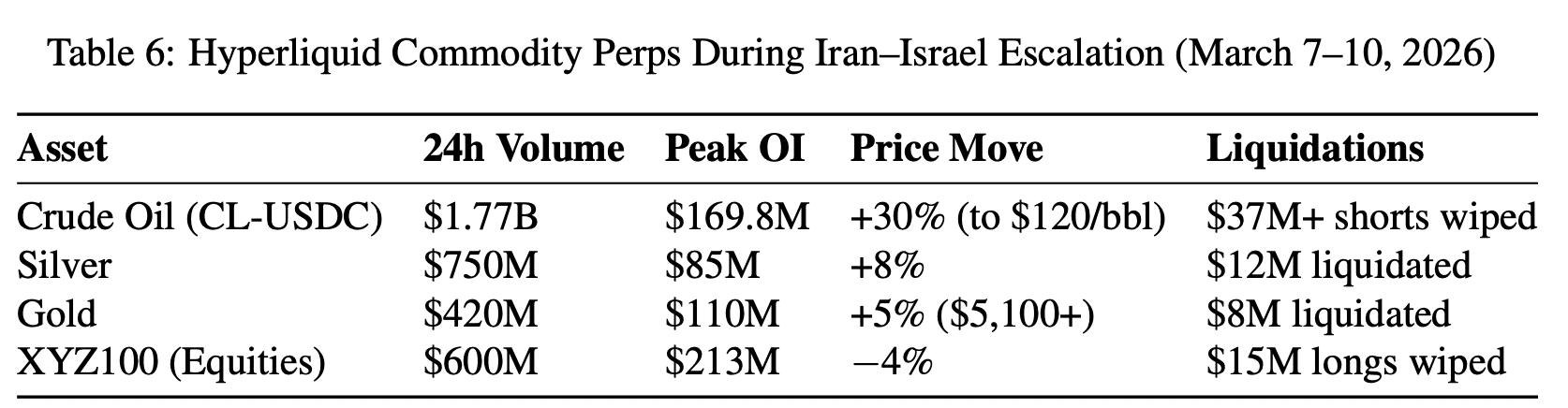 The commodities complex has risen in prominence since the US and Israel launched strikes on Iran over weekends when traditional exchanges are closed, but trading onchain is available 24/7 every day of the year. SmartestXYZ said: “The March 2026 Iran–Israel military escalation provided an unprecedented real-world validation of HIP-3’s utility. When COMEX gold and oil futures closed for the weekend, Hyperliquid became one of the only venues globally for real-time leveraged commodity price discovery.”