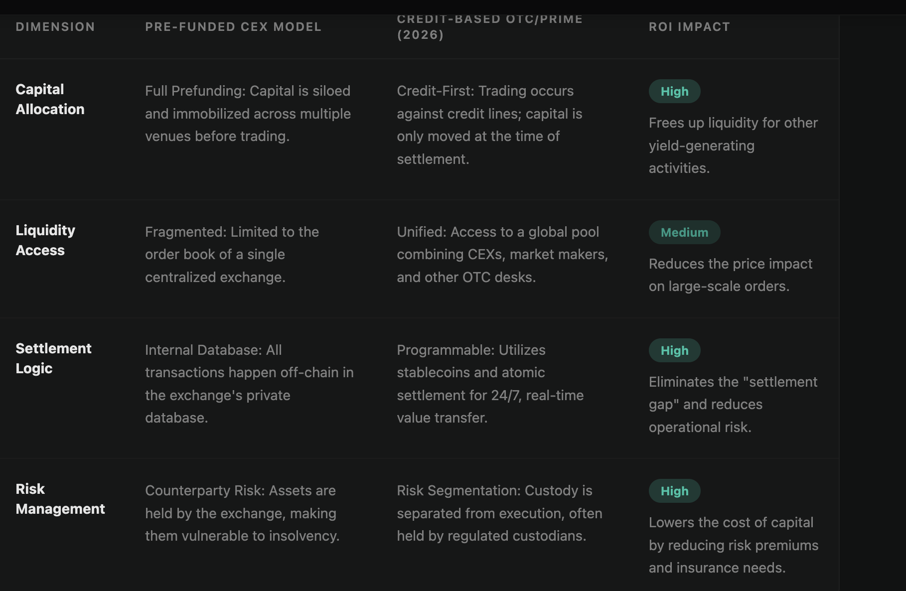 “This forced a migration toward off-exchange custody and settlement networks,” added Finery. “Today, tier one institutions are aggressively migrating away from ‘pre-funding’ models in favor of capital-neutral execution.”